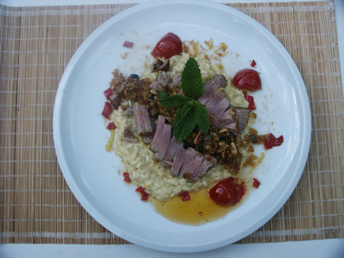 Auf dem Risotto anrichten und mit „Mollica“ bestreuen.