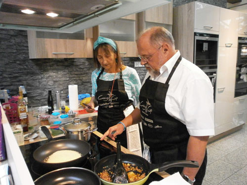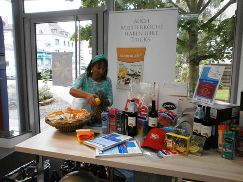 Scampi mit Chili Zitruskruste Karambole und Rum an Mango-Papaja Schaum Kokosreis, Banane Pese und Rotem Paprika Chutney - Bilder