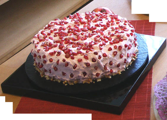 der restlichen Sahne die Torte bestreichen. Granatapfel durchschneiden die